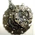 アソートパック 銀古美パーツAスポット入荷のサンプルパーツをアソートにて。デザインパーツ4点です。大きいラウンド型パーツは重厚です。ハート型モチーフが隠れているものを中心に集めてみました。画像のマス目は5mm四方です。大きさの目安にして下さい。パッチン留めは色合いの目安にどうぞ。大ラウンド 42mm 長ドロップ 43mm×22mm
