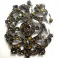 アソートパック ガンメタコネクタースポット入荷のサンプルパーツです。1個入ですが統一名称で「アソート」。両サイドに5カンずつカン穴があります。24SSラウンド×1個、18SS×4個、12SS×12個、3SS×104個がセット可能です。試作後パーツのようで、ホール穴にはストーンを嵌めた跡があります。お買い得価格にて。画像のマス目は5mm四方です。大きさの目安にして下さい。パッチン留めは色合いの目安にどうぞ。43mm×51mm