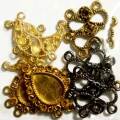 アソートパック コネクターパーツ 7個スポット入荷のパーツをアソートにて。デザインパーツ7点です。しずく型パーツは14×10のカボションがセット可能です。画像のマス目は5mm四方です。大きさの目安にして下さい。しずく型27.5mm×16mm 半月型19mm×18.8mm