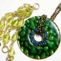 丸イヤリング 38mm 厚さ17mm 丸グリーン石付きパーツ 68mm×21mm