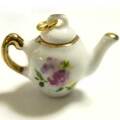 陶器チャーム ティーポット 赤白地に赤い花の模様が映える陶製チャーム。金彩も綺麗です。底面に製造上の接合溝が残っている場合がありますのでご了承ください。画像のマス目は5mm四方です。大きさの目安にして下さい。24.6mm×33.6mm 厚さ 18mm