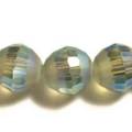 グラスビーズ 6mm カット&フロスト ピーコックラウンド型グラスビーズにフロスト加工、その後から窓をあけるように真ん中を削ってカッティングを施しています。とても綺麗なビーズです。色は薄い緑にAB加工のようなピーコックカラー。色の反射には個体差があります。窓のあき方(削り方)には微妙な個体差があります。画像のマス目は5mm四方です。大きさの目安にして下さい。6mmラウンド