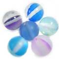 グラスビーズ 6mm アイリス 全色セット虹色に光るのでマーメイドビーズ、iridescent glassなどの名称で呼ばれています。お試しに全色1個ずつのセットです。色の出方や濃さには個体差があります。複数個並べると、角度による色合いの違いが更に際立って美しいビーズです。製法上、半円を貼り合わせたラインが見えます。画像のマス目は5mm四方です。大きさの目安にして下さい。6mm