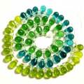 インド製グラスビーズ。ライムグリーン・ビリジアン・ライトグリーンの3色で、一連売のしずく型ビーズです。ドロップとドロップの間にはクリアの丸ビーズ(約4mm)が挟まれています。