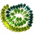 インド製グラスビーズ。ライムグリーン・ビリジアン・ライトグリーンの3色で、一連売のしずく型ビーズです。ドロップとドロップの間にはクリアの丸ビーズ(約4mm)が挟まれています。