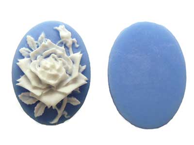 25×18 アクリルカメオ ローズ ブルー大輪の薔薇がくっきり浮かび上がる彫りの深いカメオ。花弁が綺麗ですが、その分先端が欠け易く、欠損している場合もあります。25mm×18mm