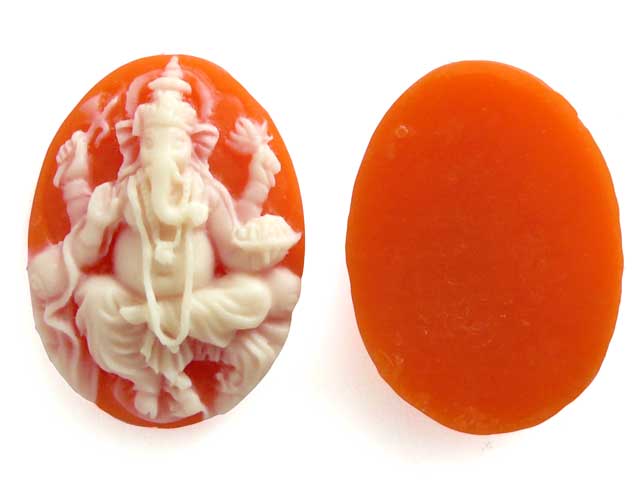 25×18 アクリルカメオ ガネーシャ鮮やかなオレンジ色の台にクリームホワイトの象神。ヒンドゥーの神様モチーフのカメオはちょっと珍しいですね。彫りも細かくてきれいです。色合いに若干の個体差がありますので、お選び下さい。25mm×18mm