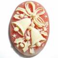 25×18 アクリル クリスマスベル 朱 難アリ模様の微細な欠け等、難アリ品をアウトレットにて。試作用などにどうぞ。粉雪の舞うような雰囲気のクリスマスモチーフカメオ。リボンとベル、ヒイラギ、お星さまなど細かくて綺麗です。土台は朱赤からクリーム色のグラデーションになっており、やや個体差があります。リボン部分は全て繋がっているのではなく、途切れている場合もあります。画像のマス目は5mm四方です。大きさの目安にして下さい。25mm×18mm 厚さ 5.5mm