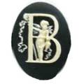 40×30 イニシャルカメオ B 難アリ文字や絵柄に少々の欠けがみられるため、アウトレットにて。サンプル制作用にどうぞ。アルファベットと天使のデザイン。地色は黒です。全種類、1個から単品でお求めいただけます。ご希望個数に満たない場合は随時お取り寄せ致しますので、メールにてお問合せ下さい。40mm×30mm