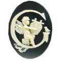40×30 イニシャルカメオ Gアルファベットと天使のデザイン。地色は黒です。全種類、1個から単品でお求めいただけます。ご希望個数に満たない場合は随時お取り寄せ致しますので、メールにてお問合せ下さい。40mm×30mm