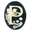 40×30 イニシャルカメオ Pアルファベットと天使のデザイン。地色は黒です。全種類、1個から単品でお求めいただけます。ご希望個数に満たない場合は随時お取り寄せ致しますので、メールにてお問合せ下さい。40mm×30mm