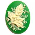 40×30 アクリルカメオ 鈴蘭 緑繊細な模様のアクリルカメオ。スズランの花と小さな花や葉が描かれ、とても素敵です。※入荷ロットによって色合いが異なります。2025.2.24 鮮やかになったので画像を差し替えました。画像のマス目は5mm四方です。大きさの目安にして下さい。40mm×30mm 厚さ6.2mm