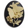40×30 アクリルカメオ 蝶と花 黒花の蜜を吸う蝶がきれいな、立体的なカメオ。製法上、裏面に他の色の樹脂の欠片が付着している場合がありますのでご了承下さい。画像のマス目は5mm四方です。大きさの目安にして下さい。40mm×30mm 厚さ 10.6mm