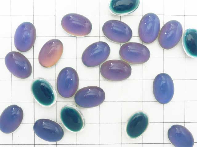 アクリル製のカラーチェンジカボション。ムードビーズと同じく、温度変化によって色が変わります。