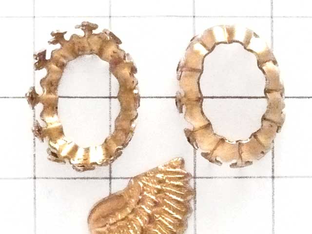 16×11 オーバルセッティング クラウン 真鍮16×11サイズストーン用の台座。爪の調整次第で、幅広いサイズのストーンに対応可能です。下画像でご覧下さい。14×10だとやや爪が長く余りますが、高さのあるストーンには向いています。(高さ分取られるので)18×13ストーンも、あまり高さの無いタイプのストーンやカボションなら爪の長さが足りるので、セット可能です。画像のマス目は1cm四方です。大きさの目安にして下さい。17.5mm×13mm 厚さ 6.8mm