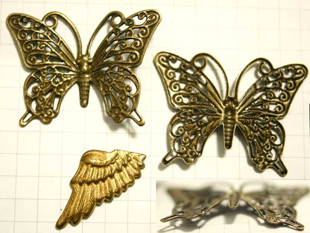 フィリグリー 羽模様 蝶 真鍮古美