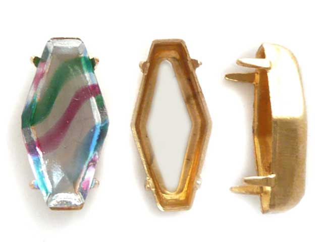 15×7 ダイアモンドセッティング 真鍮ダイヤ型ストーンにぴったりの変形ダイアモンド型セッティング。オープンバック。カンやホール穴はありません。15mm×7mm