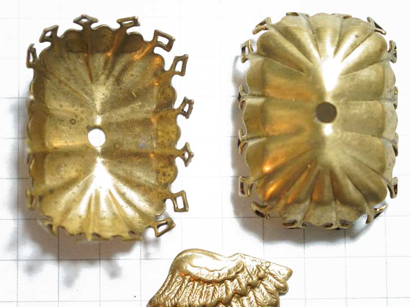 クローズドバック、クラウン爪タイプのセッティング。厚み約6mm。真鍮色。