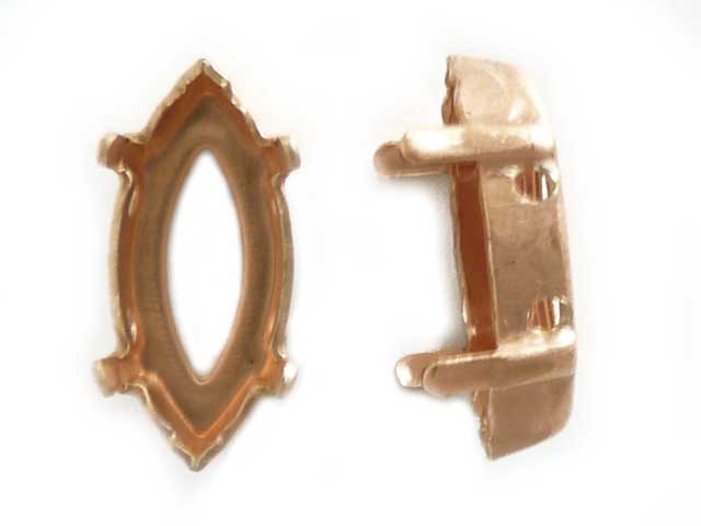オープンバック、左右に2ホールずつ開いています。編込や貼付が容易です。赤みがかった真鍮色。