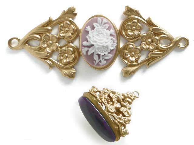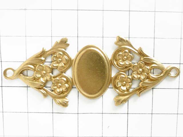 両端にカンのついた、スタンピングコネクター。中央に18×13カボションを貼り付け可能な枠がついています。