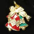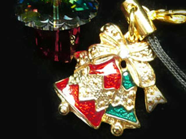 チャーム クリスマスベル 金赤と緑のエナメルが美しいクリスマスチャーム。リボン中央のラインストーンも華やかです。22mm×22mm 厚み3.7mm
