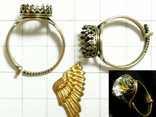 47SS(10.5から10.9mm)サイズのラウンド型ストーンが合う指輪パーツです。クラウン型爪の高さが3.5mmほどあるため、背の低いカボションタイプのものは埋まった感じになってしまうかもしれません。