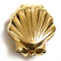 紐止め シェル型 金貝の形が可愛い紐先金具です。先端に爪が3つ(上2・下1)付いていますので、紐やリボンを挟んで、ペンチ等でカシメて下さい。コードキャップとして使用しても良し、単に飾りとして使っても可愛いです。こちらは日本製。画像のマス目は1cm四方です。大きさの目安にして下さい。真鍮スタンピングは色合いの目安にどうぞ。10mm×10.2mm 厚さ 2.5mm