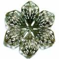 フィリグリー 薄型 6枚花 真鍮古美繊細な透かし模様が美しいフィリグリー。薄型なので折り曲げも出来そうです。画像のマス目は5mm四方です。大きさの目安にして下さい。真鍮スタンピングは色合いの目安にどうぞ。42mm×37.5mm 厚さ 0.4mm