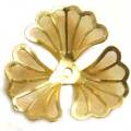 メッシュ銀杏葉 金スチールに金メッキの、しっかりした硬さのあるフラワー?モチーフパーツ。花びらのようにも、銀杏の葉のようにも見えます。裏にメッシュが貼り付けられていて、葉脈や透け感が美しいです。画像のマス目は5mm四方です。大きさの目安にして下さい。真鍮スタンピングは色合いの目安にどうぞ。37.5mm×38.4mm 高さ 6mm