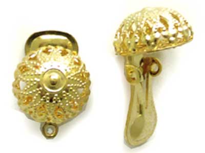 クリップ式イヤリング フィリグリー 金12mmのドーム型フィリグリーが付いた華やかなイヤリングパーツです。ドームの下に1カン付き。金具を開いた全長 22mm 閉じた際の大きさ 17.8mm×12mm 1ペア