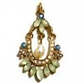 ドロップ型の台座にペールミント、ターコイズ、ホワイトオパールのストーンが嵌め込まれ、中央にはしずく型のパールが吊り下げられています。