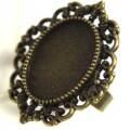 指輪ベース 18×13オーバル用 真鍮古美18×13サイズのオーバル型カボションが合う指輪パーツです。接着剤で貼り付けてご使用下さい。リングの太さは13号ですが、縮めたり広げることで調節はできます。画像のマス目は5mm四方です。大きさの目安にして下さい。真鍮スタンピングは色合いの目安にどうぞ。フィリグリー面 30mm×23.5mm 高さ 20.5mm