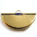 リボンエンド 25mm 扇型 金間にリボンやコード、布等を挟む金具。真鍮に金メッキ。画像のマス目は5mm四方です。大きさの目安にして下さい。真鍮スタンピングは色合いの目安にどうぞ。25mm×14mm 厚さ(初期状態) 8mm