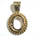 12×10 ペンダントST バチカン付 金周囲の飾り模様がとてもキレイな12mm×10mmオーバル用のペンダントセッティング。貼り付け用です。フラットバック用ですが、ポインテッドバックのストーンでも出来そうです。画像のマス目は5mm四方です。大きさの目安にして下さい。真鍮スタンピングは色合いの目安にどうぞ。27mm×16mm 厚さ5.9mm
