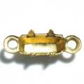 5×2.5バゲットセッティング 2カン 真鍮5×2.5バゲットストーンがセットできます。爪を内側に倒してストーンをセットして下さい。長さ6mmのストーンもギリギリセット可能ですが、両端のカン穴ぎりぎりまでストーンがきます。画像のマス目は5mm四方です。大きさの目安にして下さい。真鍮スタンピングは色合いの目安にどうぞ。(カン部分含む)9.75mm×3.3mm 高さ(爪含む) 2.7mm