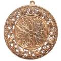 スタンピング ラウンド葉装飾枠 1カン 真鍮銅寄りの赤みの真鍮スタンピング。中央の平たい部分は直径25mm。プレス機で型抜きしたままなので、ふちが切りっぱなしです。直に肌に触れる際は、紙ヤスリをかけた方が良いかもしれません。画像のマス目は5mm四方です。大きさの目安にして下さい。44.5mm×40.7mm 厚さ 3mm
