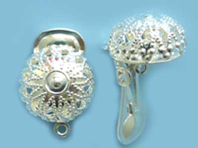 クリップ式イヤリング フィリグリー 銀12mmのドーム型フィリグリーが付いた華やかなイヤリングパーツです。ドームの下に1カン付き。金具を開いた全長 22mm 閉じた際の大きさ 17.8mm×12mm 1ペア