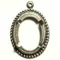 18×13 オーバルカボ枠 縄目 1カン付 銀古美色合いが変わりましたので画像を差し替えました。マットな銀古美カラーです。4爪でカボションを押さえて下さい。画像のマス目は5mm四方です。大きさの目安にして下さい。パッチン留め(銀)は色比較の目安にどうぞ。 28mm×19mm 厚さ 1.7mm(爪除く)