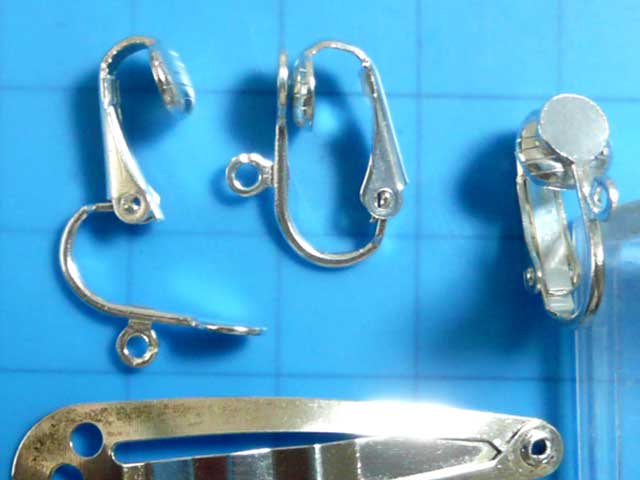 プレーンなクリップ式イヤリング金具。カボションなどを貼り付け可能な台座の直径は5mm。