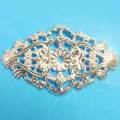 フィリグリー 菱形 銀スチール製の透かしパーツにシルバーメッキ加工。軽量ですが、がっしりしています。折り曲げには向きません。型抜きパーツのため、直に肌に触れる際は、紙ヤスリをかけた方が良いかもしれません。画像のマス目は1cm四方です。大きさの目安にして下さい。パッチン留めは色比較の目安にどうぞ。35mm×58.8mm 厚さ 2.6mm
