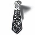 バチカン アイスピック型 小 彫刻 銀バチカン正面に細かい彫り模様の入った1カン付きバチカン。真鍮に銀メッキ。横から見ると「A」のような形状になっています。大きく両側に開いてアイスピック部分を吊りたいもののホール穴に通し、そっと閉じて下さい。 画像のマス目は5mm四方です。大きさの目安にして下さい。パッチン留めは色比較の目安にどうぞ。(カン部分含む)11.6mm×4mm 厚さ 1.2mm
