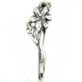 バチカン ドーナツ型 花 銀古美バチカン正面に一輪の花模様の入ったバチカン。真鍮に銀古美メッキ。横から見ると「逆さU」の形状になっています。間に吊るしたいものを挟み、カン穴を合わせて閉じて下さい。 画像のマス目は5mm四方です。大きさの目安にして下さい。パッチン留めは色比較の目安にどうぞ。22.5mm×7.5mm 厚さ 1.2mm