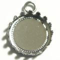 12mm ラウンド 1カンクラウン枠 CB 銀王冠キャップ型のセッティングパーツ。ステンレススチール製。画像のマス目は5mm四方です。大きさの目安にして下さい。パッチン留めは色合いの目安にどうぞ。(カン含む)17mm×13.2mm 高さ(爪含む) 3.6mm