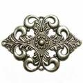 スタンピング 菱型 大 銀古美変形菱型の、やや大きめフィリグリー。上下左右に穴があいているので、コネクターとしても使えそうです。厚みがありますので折り曲げは難しいです。プレス機で型抜きしたままなので、ふちが切りっぱなしです。直に肌に触れる際は、紙ヤスリをかけた方が良いかもしれません。画像のマス目は5mm四方です。大きさの目安にして下さい。パッチン留めは色比較の目安にどうぞ。30mm×41.5mm 厚さ0.85mm