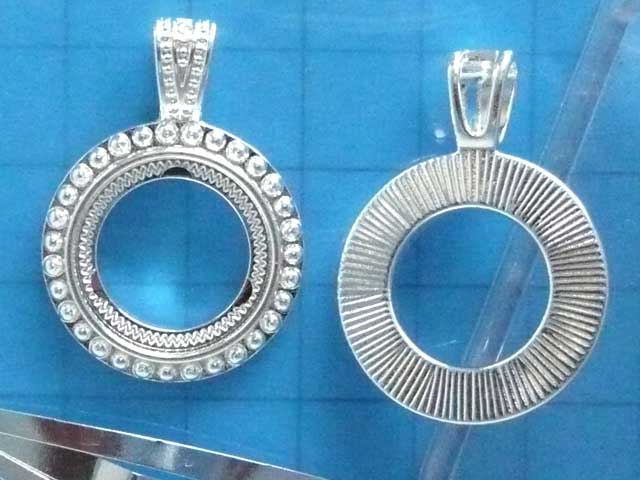 周囲の飾り模様がとてもキレイなラウンド16mm用のペンダントセッティング。貼り付け用です。フラットバック用ですが、ポインテッドバックのストーンでもリヴォリなどの浅いストーンならぴったりです。