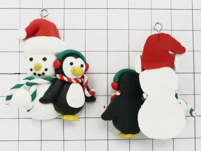チャーム 雪だるま&ペンギン ヒビ割れポリマークレイのキュートなペンギンと雪だるまのチャームです。ペアルック?なマフラーがたまりません。非常に軽量ですが、素材の性質上、水には弱いのでご注意ください。ピン穴部分が少々ヒビ割れしているもの(最下部参考画像参照)を、お試し&お買い得価格で。画像のマス目は1cm四方です。大きさの目安にして下さい。48mm×36mm 厚み18mm