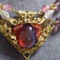 メキシカンオパールのネックレスフィリグリーを様々な形状に折り曲げてストーンを留める試み。バチカン部分は別の小さなフィリグリーを曲げて使用。首の後ろと重さのバランスをとるため、かなり大きめのグラスビーズをトグル金具の端に付けています。