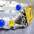 おおぶりのメタルスライダービーズをブレスレットに。アーム部分は色鮮やかなコバルトとイエローのチェコビーズで。