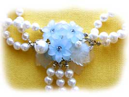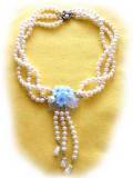 クリスタルレジンフラワー アクアブルー&ライトサファイアを使った豪華な三連パールネックレスです。