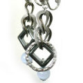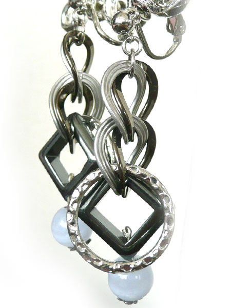 イヤリング ブルーレースアゲート&メタルメタルチェーンを活かしたアクセを考えてみました。ブルーレースアゲートとヘマタイト使用。モチーフ部分 41mm×17mm 1ペア